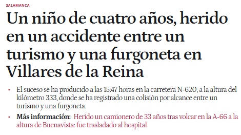 Fecha: 19 de febrero de 2026 Lugar: Villares de la Reina (Salamanca) Menores implicados: 1 (4 años) Más información: El Español