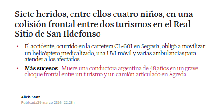 Fecha: 28 de marzo de 2026 Lugar: Segovia Menores implicados: 1 (4 años) Más información: El día de Segovia