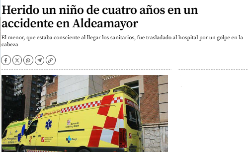 Fecha: 19 de octubre de 2025 Lugar: Aldeamayor de San Martín (Valladolid) Menores implicados: 1 (4 años) Más información: Diario de Valladolid