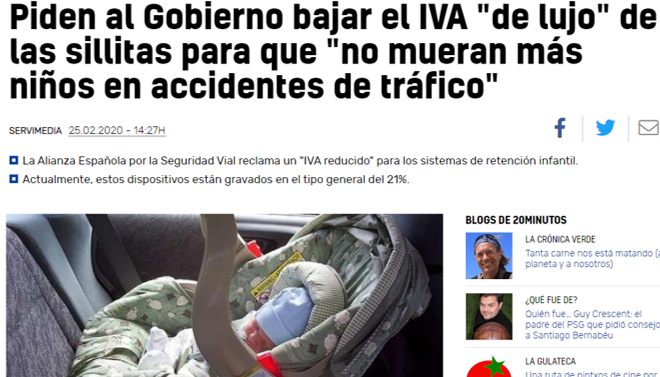 “Por su elevada efectividad demostrada, consideramos que proteger a los niños en un coche no debería ser un lujo y, por lo tanto, no creemos que gravar estos sistemas con el IVA más alto mejore e incentive su compra, y por lo tanto su uso”