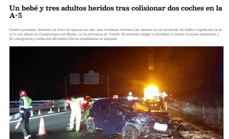 Fecha: 8 de febrero de 2026 Lugar: Casarrubios del Monte (Toledo) Menores implicados: 1 (12 meses) Más información: CLM24